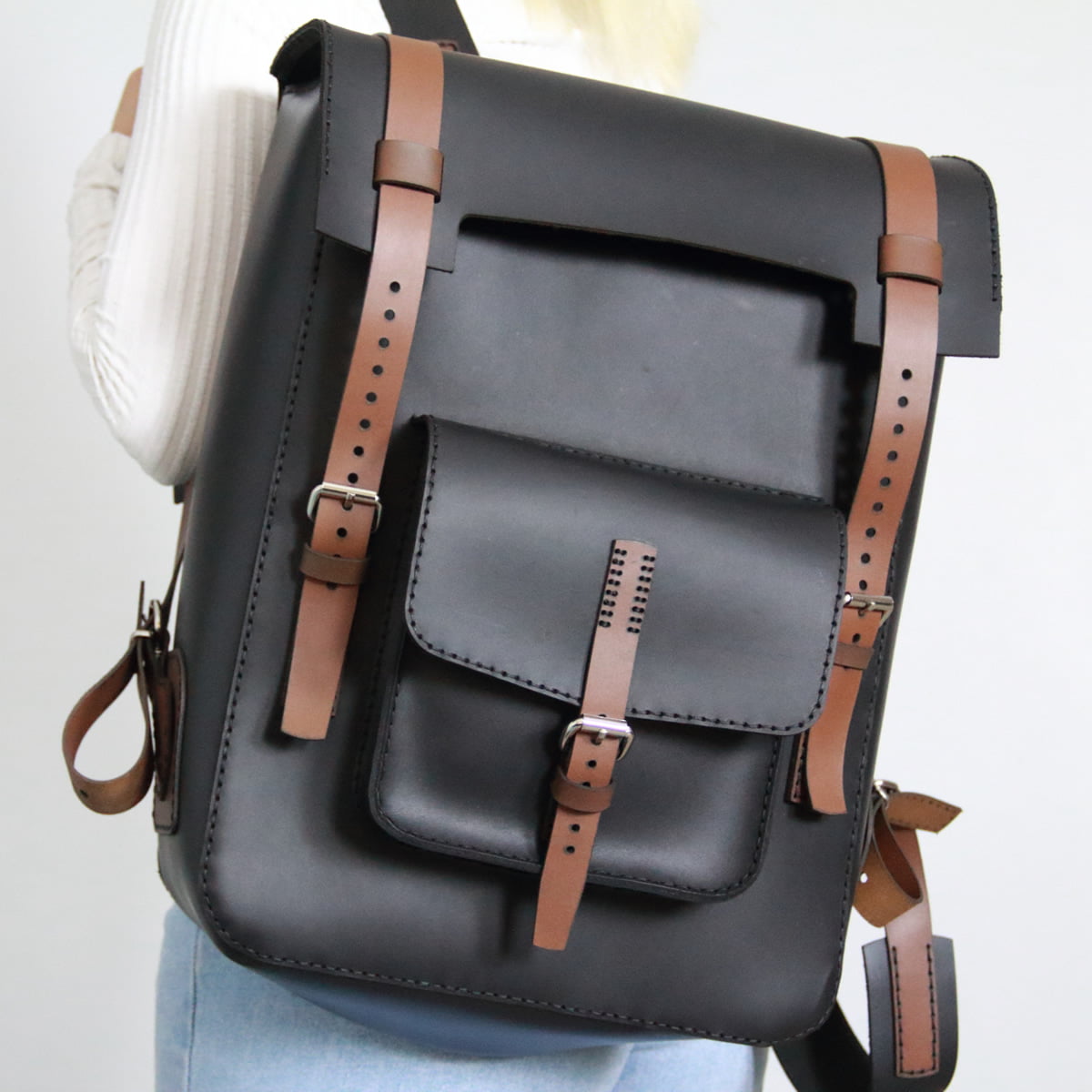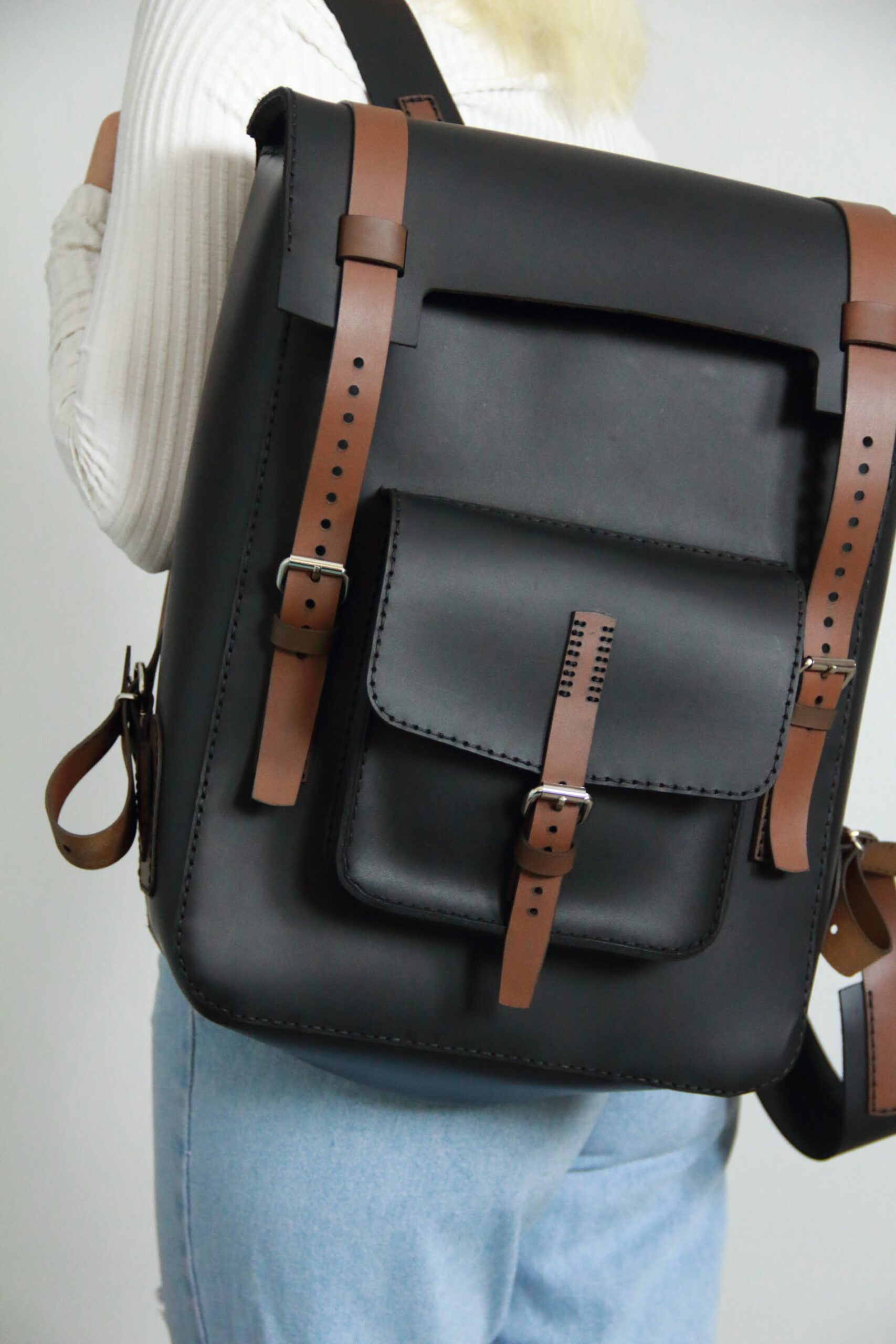 El Yapımı Hakiki Deri Sırt Çantası