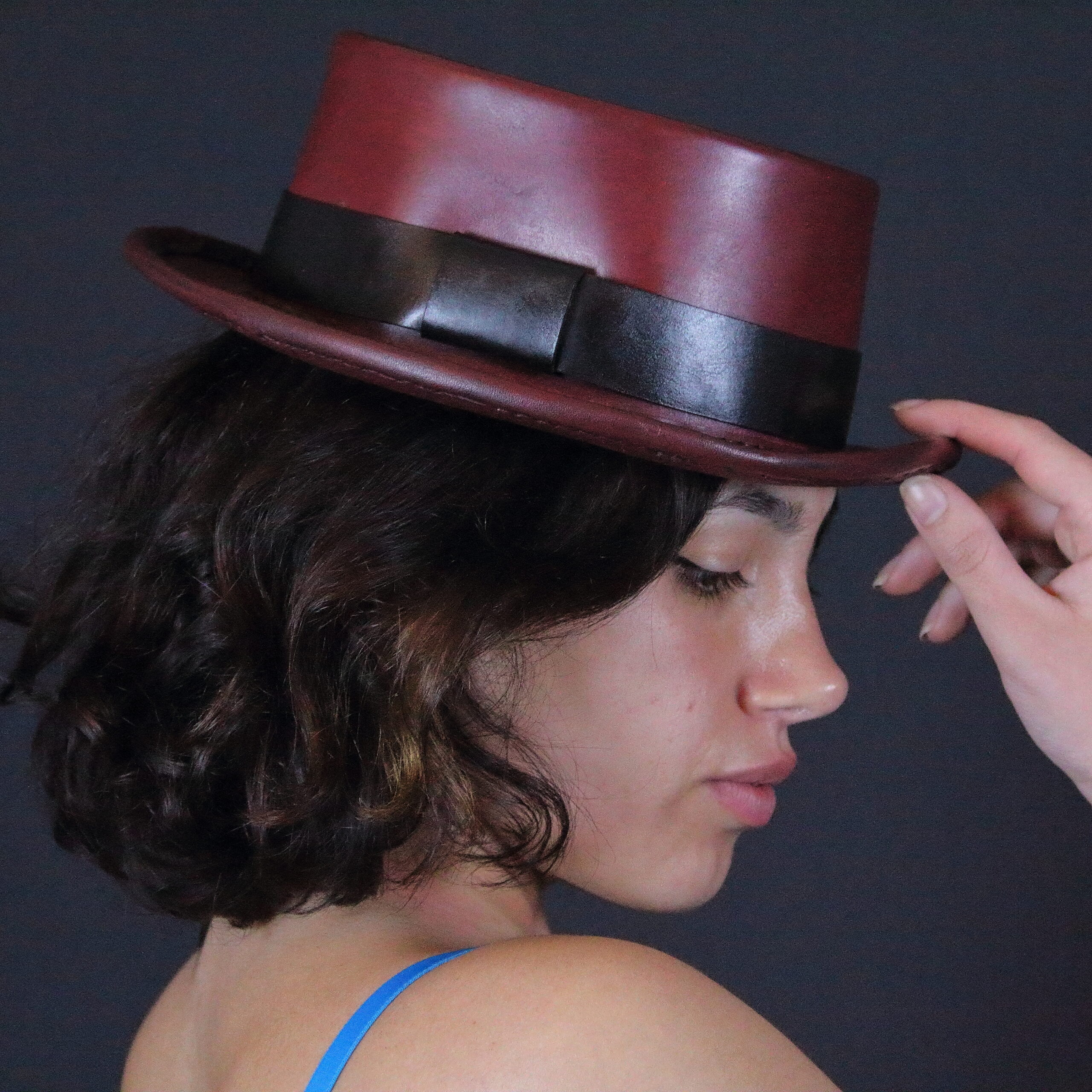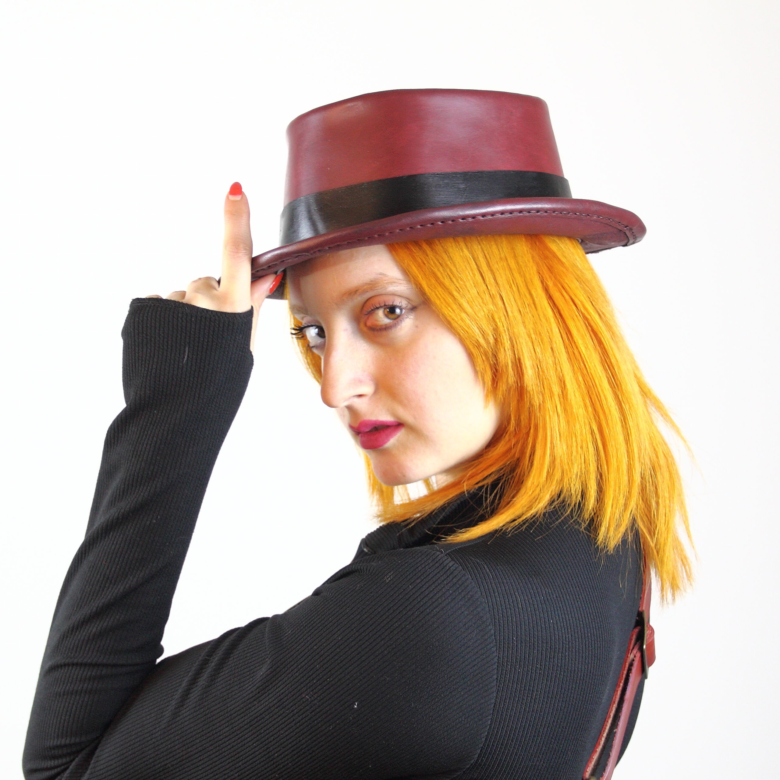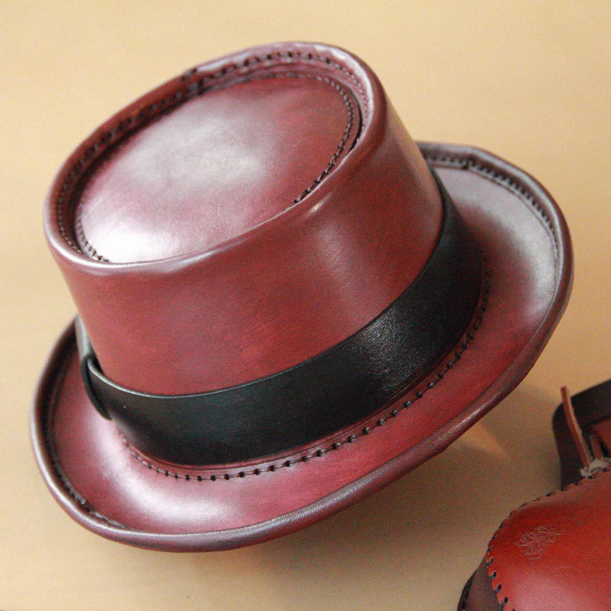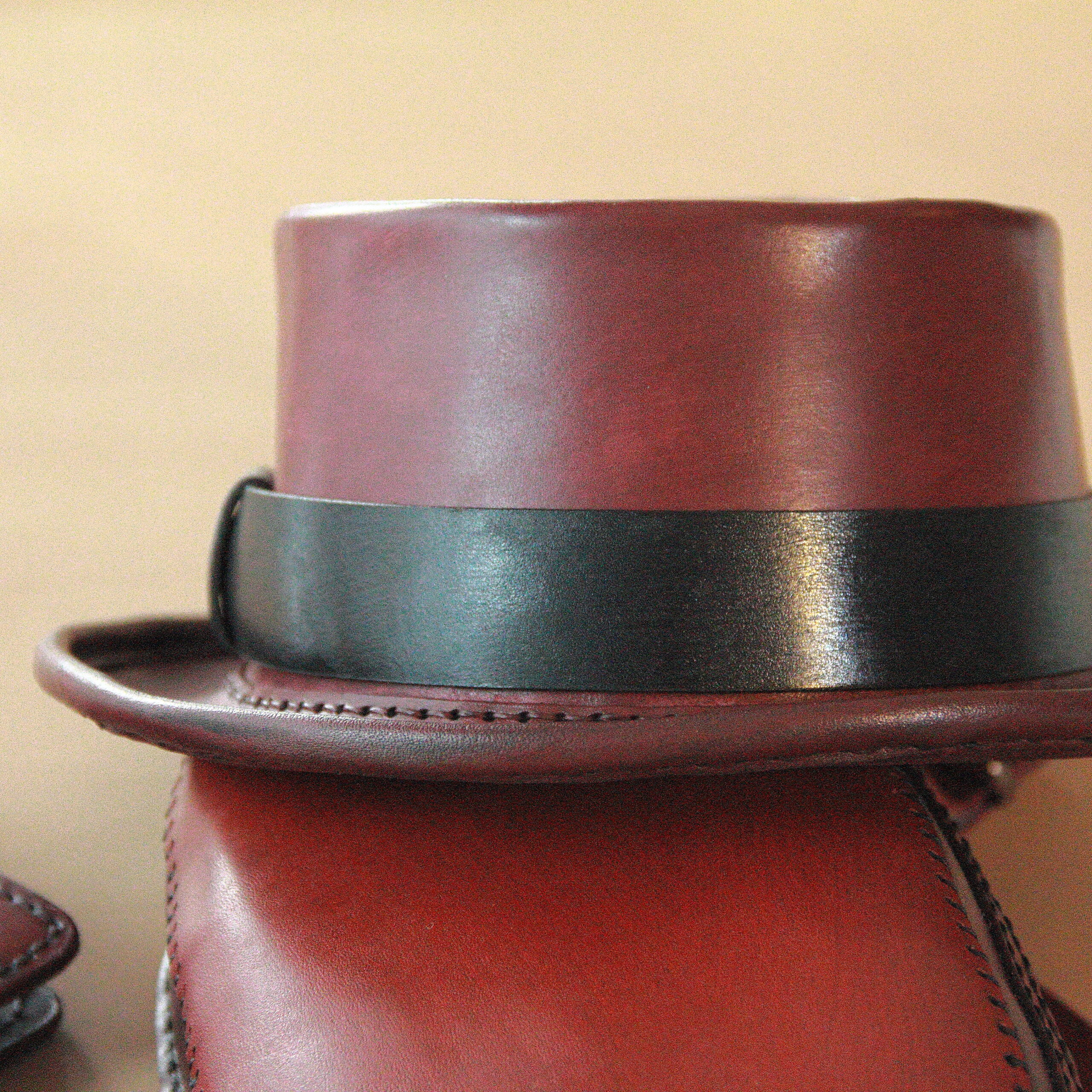2-3 mm kalınlığında birinci sınıf deriden tamamen elde yapılmaktadır. Sipariş aşamasında istediğiniz rengi belirtmeniz yeterlidir. Ölçünüzü alın çizgisinden kafanızın çevresini mesura veya ip yardımıyla ölçerek bulabilirsiniz.